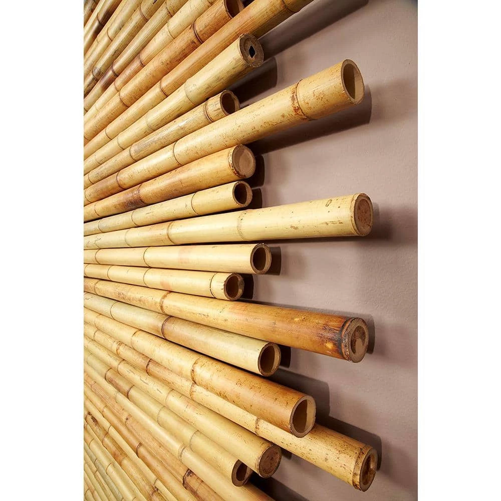 Bamboo poles are a versatile, natural product that can be used for many application indoors or outdoors. They can help support plants, used as curtain rods, pieces for tomato cages, building structures or as a tropical decoration. Bamboo poles are also a logical solution to augment indoor areas like walls and ceilings. Backyard X-Scapes, Inc. uses the finest Tonkin bamboo canes from the Anji Mountain located in China to manufacturer their bamboo poles. These bamboo sticks go through a rigorous process to ensure that their customers will be receiving a quality bamboo product for longevity. The way it grows, gives the poles a tapered look, making one end wider than the other. Bamboo poles are dried to give it a tan dark color. Bamboo nodes are about 8-12 in. apart but can be removed to hollow the pole.