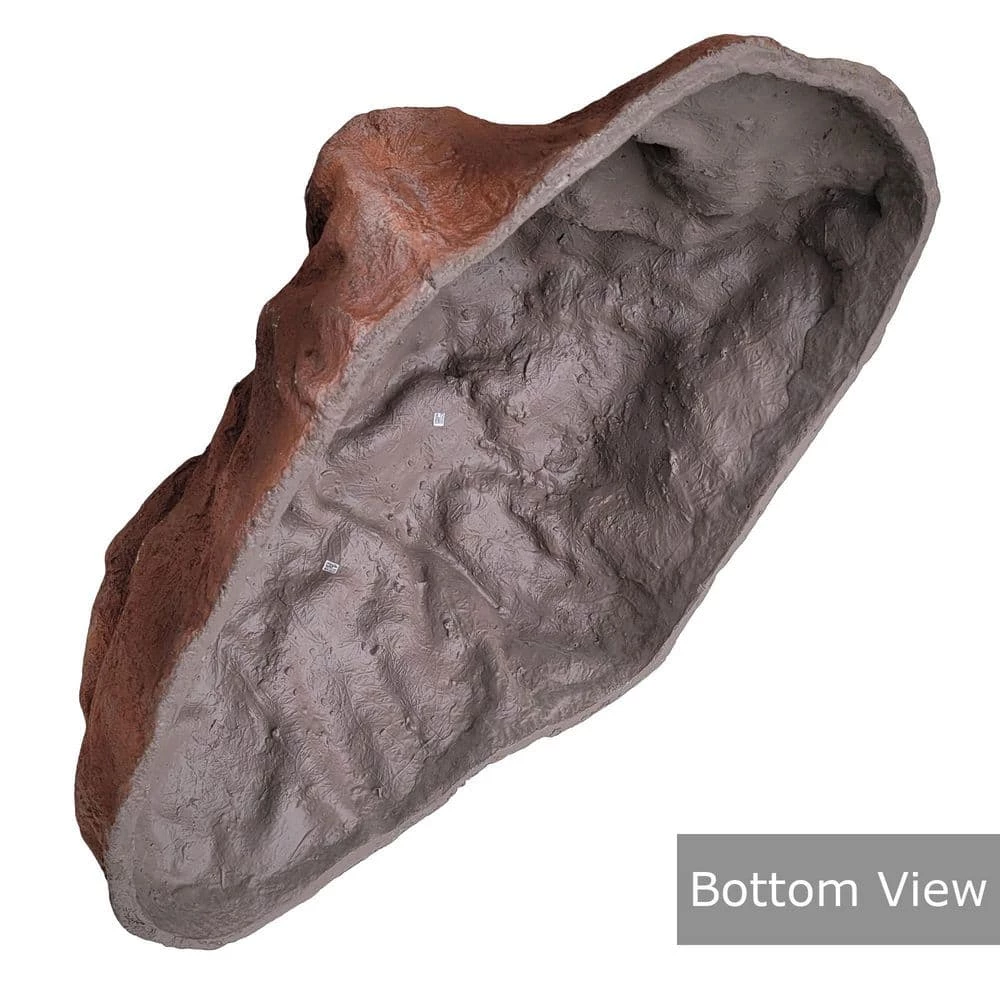 - Medium Clay Artificial Fiberglass Hollow Rock measures 12 in. H x 20 in. W x 30 in. L for easy placement in any yard or landscape or easily hide water fixtures