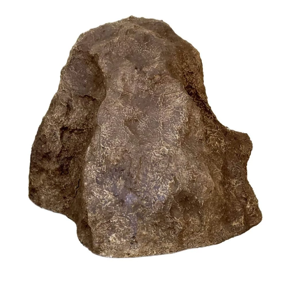 - Small artificial desert brown fiberglass hollow rock measures 16 in. L x 13 in. W x 9 in. W for easy placement in any yard or landscape or easily hide water fixtures