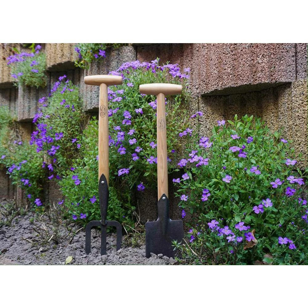The Long Handle Perennial Fork works great for digging and separating bulbs without damage. The long handle allows you to stand instead of kneel and help relieve back strain. T-Grip handle reduces stress on the hand and wrist. Constructed of tempered boron steel with ash handle.