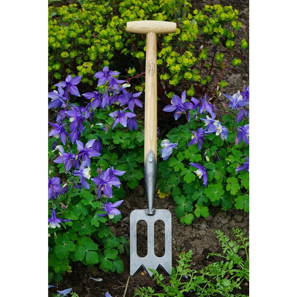 More than a tool, it’s an heirloom. Made from high quality tempered boron steel, the blade of the Perennial Spork will not bend even with heavy-duty use. Slots in the blade give the tool a spring effect. The unique cutting edge of the Spork makes it easy to cut through the lawn or soil. Small, yet crafted to yield strength to make gardening chores easy. Great for digging in confined areas. Also works well for splitting large perennials for transplanting. Patented design. This tool is guaranteed a lifetime.