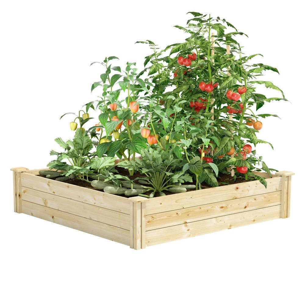 The 4 ft. x 4 ft. x 10.5 in. Original Pine Raised Garden Bed lets you grow your all your favorite plants, vegetables and herbs. Assembling this kit is a simple: simply slide the boards into the corner posts to form your frame, attach the caps and add your soil and plants. You won’t find an easier way to create the garden of your dreams.