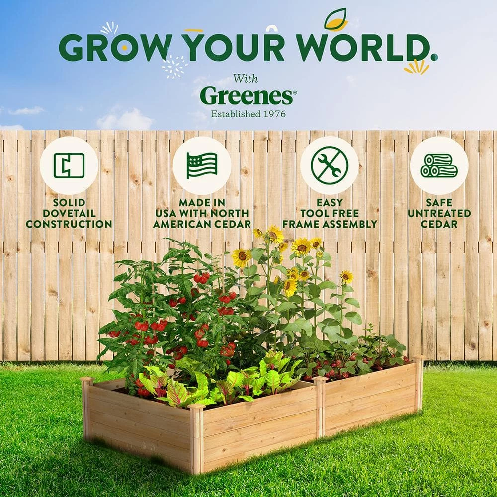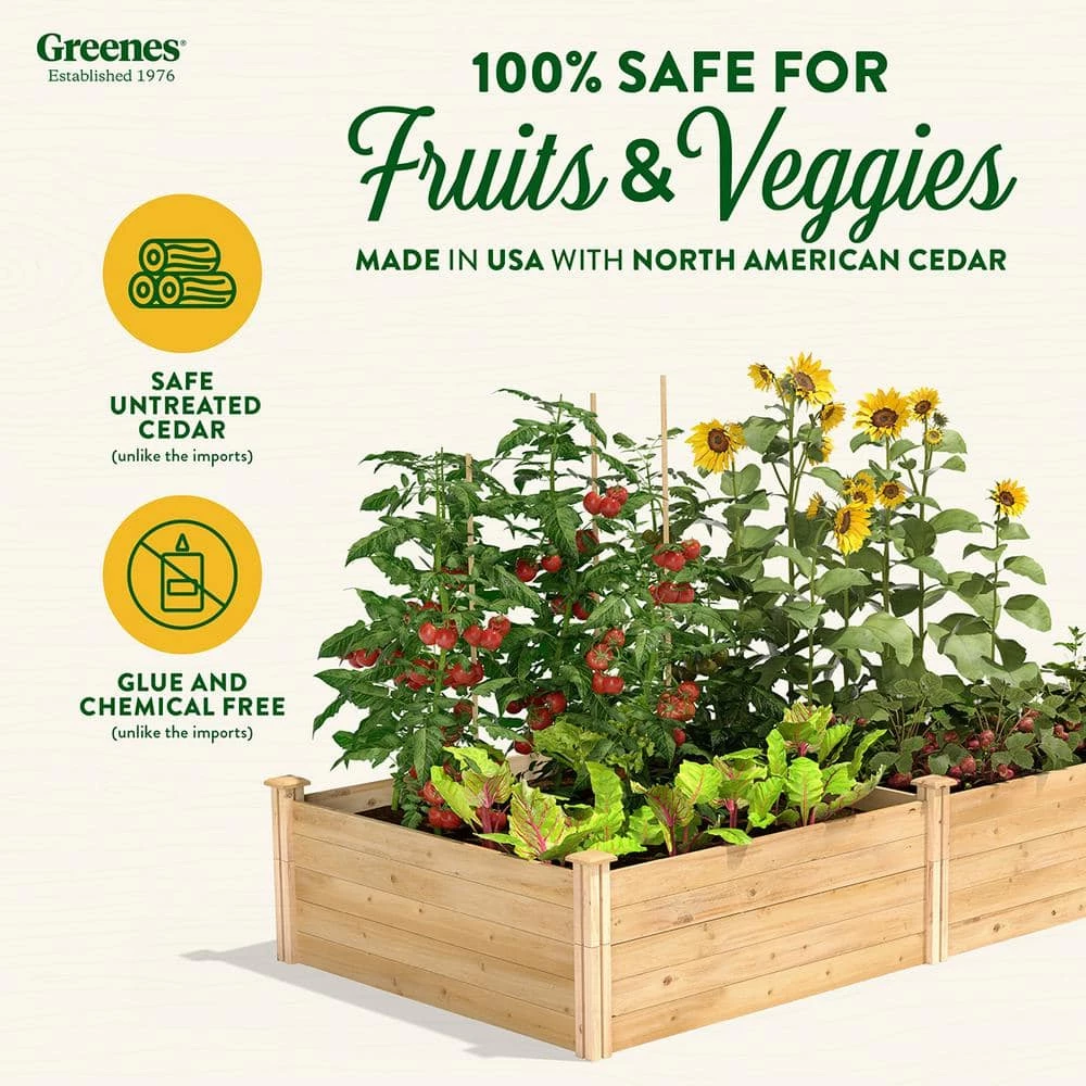 - Greenes Original Raised Garden Bed: Greenes Fence Original line of cedar raised garden beds allows you to create an open-bottom frame to support your garden; Raised garden beds give your plants the room they need to grow in the location of your choice; Our cedar frame is left untreated, which means it is organic and safe to grow vegetables, herbs, and fruits in