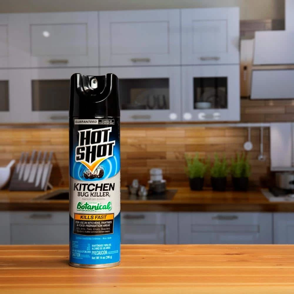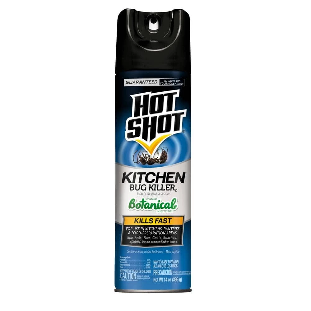 Between the carpool and the couch cushions, you’re the CEO of the home front. Take care of your family – and take care of business, no matter where household pests rear their ugly heads. Show bugs who’s boss with Hot Shot insecticides. They’re your weapon of choice, giving you the clear advantage within your walls and at the bank.When kitchen bugs wander into the heart of your home, stop them in their tracks with Hot Shot Kitchen Bug Killer2. This aerosol spray kills listed bug fast in kitchens, pantries and food-preparation areas. The formula contains botanical insecticides to control roaches, ants, spiders, flies, gnats and other common kitchen insects.To kill crawling insects in your kitchen area, spray Hot Shot Kitchen Bug Killer2 into hiding places such as cracks and crevices, behind sinks, cabinets or around closed cartons or containers, hitting insects with spray whenever possible. To get rid of flying insects, use as a space spray. To treat for listed grain moths and meal moths, close all doors and windows and direct spray to all parts of the room, especially around closed, stored food containers and darkened areas. See product label for complete directions for use. When creepy kitchen bugs attempt to pass, save the day with Hot Shot insecticides.