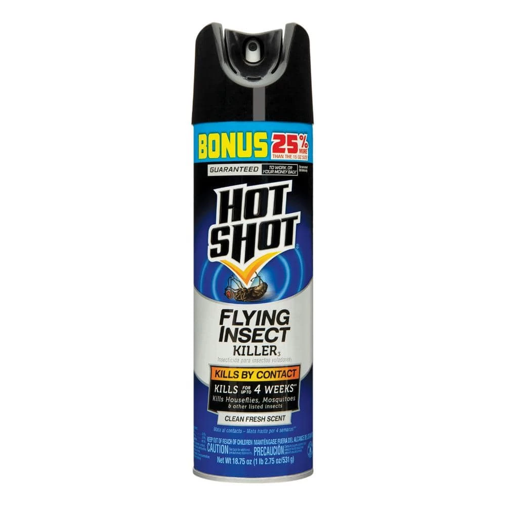 Between the carpool and the couch cushions, you’re the CEO of the home front. Take care of your family – and take care of business, no matter where household pests rear their ugly heads. They’re your weapon of choice, giving you the clear advantage within your walls and at the bank. Protect yourself from pesky flying insects around your home with Hot Shot Flying Insect Killer3. The aerosol spray kills houseflies, mosquitoes, gnats, fruit flies and other listed insects both indoors and outdoors. The water-based formula kills by contact and also kills for up to 4 weeks against mosquitoes and houseflies on non-porous surfaces. Hot Shot Flying Insect Killer3 leaves behind a clean, fresh scent. Use Hot Shot Flying Insect Killer indoors in insect hiding and breeding places, especially under attic rafters, and repeat treatment as necessary. You can also use as a space spray to control houseflies, mosquitoes, cluster flies, gnats, fruit flies and flying moths. Close all doors and windows before spraying and direct spray mist to all parts of the room, especially windows and other light sources that attract insects. Keep treated rooms closed for at least 15 minutes, then ventilate. Outdoors, spray around the outside surfaces of screens, doors, window frames or wherever listed flying insects may find entry into your home. See the product label for complete treatment directions.When creepy bugs attempt to pass, save the day with Hot Shot insecticides.