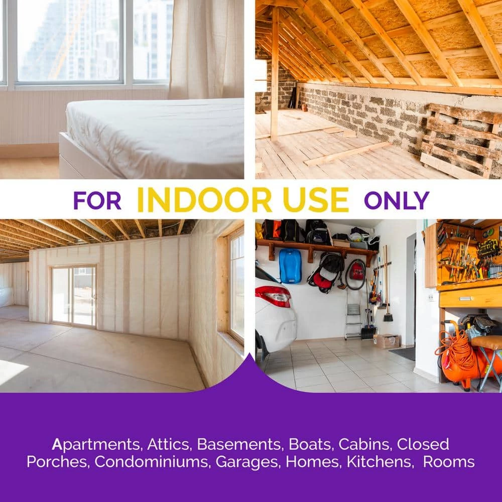 - WHERE TO USE: Use indoors in enclosed spaces such as apartments, attics, basements, boats, cabins, closed porches, condos, garages, homes, kitchens and pet sleeping areas