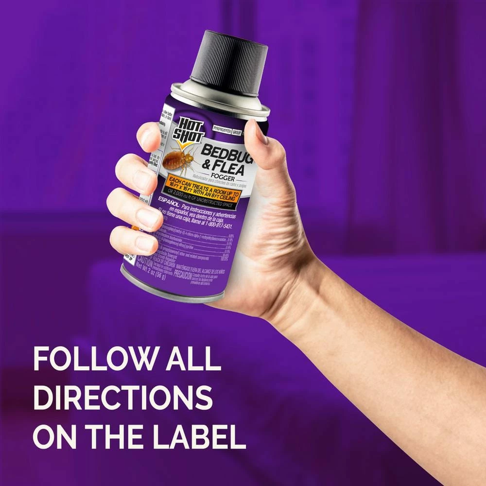 In your house, you’re the fearless protector. Control bugs with Hot Shot home insect control solutions. Whether you’re clashing with ants, roaches, spiders, bed bugs or beetles, Hot Shot brand’s powerful formulas make it clear to pests that they picked the wrong house. Because there’s only room for one queen in your colony. Hot Shot BedBug & Flea Fogger kills bed bugs, fleas, lice, ticks and other listed insects. Plus, it contains Nylar insect growth regulator to prevent fleas from developing into the biting adult stage and inhibits flea reinfestation up to 7 months. Additionally, this fogger effectively kills beetles, boxelder bugs, cockroaches, earwigs, fire ants, flea eggs, flea larvae, fleas, flies, flying moths, gnats, grain weevils, hornets, lice, millipedes, mosquitoes, palmetto bugs, pharaoh ants, pillbugs, silverfish, sowbugs, wasps, ticks and yellow jackets. One can of this product treats up to 2,000 cubic feet of unobstructed space (15.5 ft x 16 ft with 8 ft ceiling) and is perfect for use in apartments, attics, basements, boats, cabins, closed porches, condominiums, garages, homes, kitchens, and pet sleeping areas.. Read and follow all label directions before using this product.