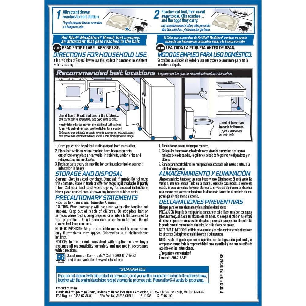 - STARTS KILLING ROACHES IN HOURS: Hot Shot MaxAttrax Roach Bait kills both large and small roaches where they breed.