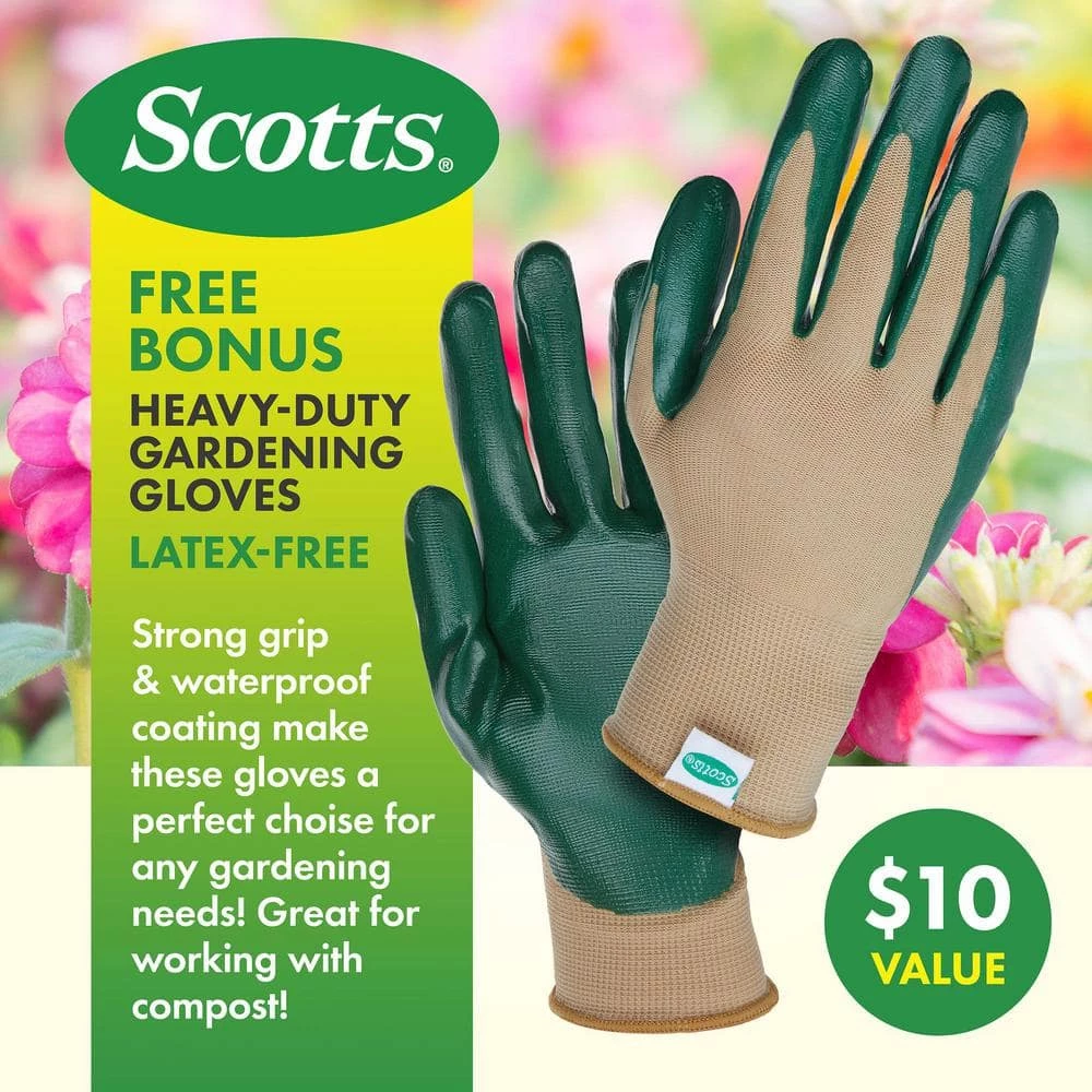 - Free bonus gift – achieve your garden goals with a free pair of Scotts multi-purpose gardening gloves each pair is latex-free, water-resistant and features a no-slip grip, perfect for both indoor and outdoor projects grow your green thumb with Scotts and Miracle-Gro