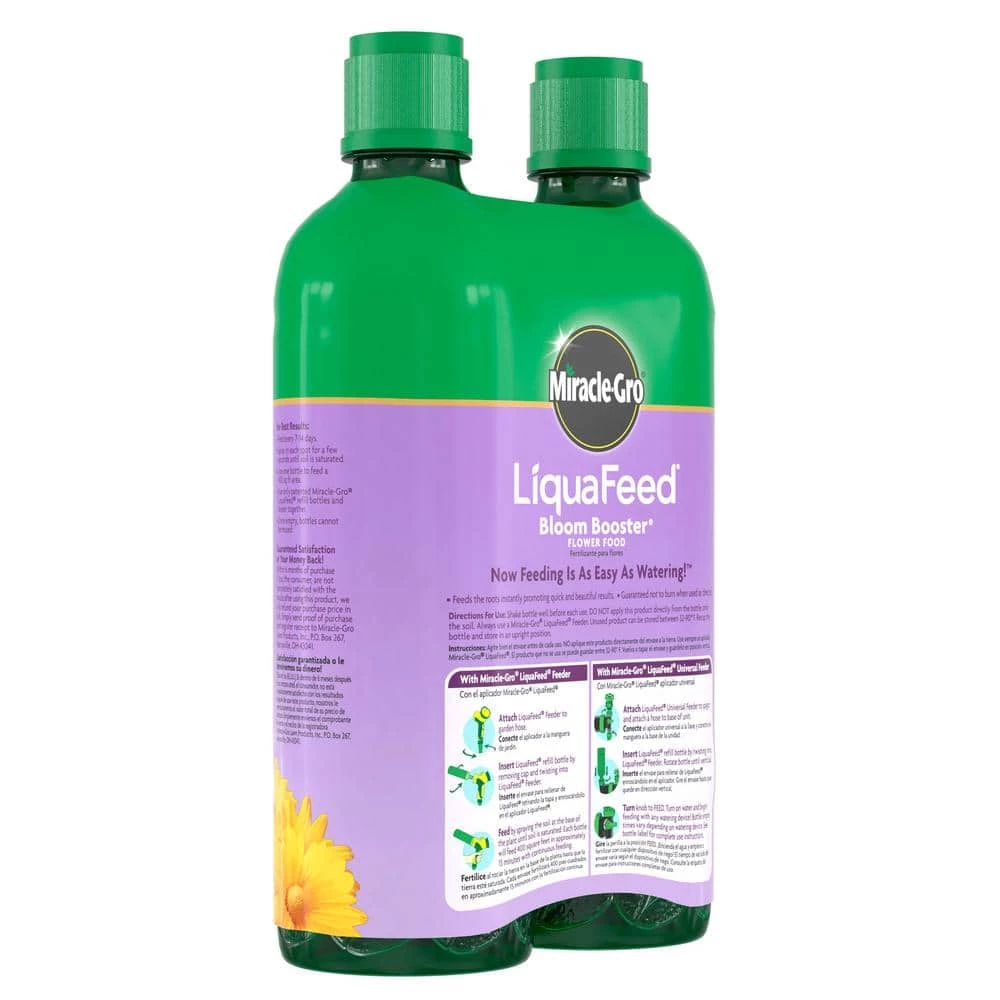 Miracle-Gro LiquaFeed Bloom Booster Flower Food promotes more blooms for greater color compared to unfed plants. Feeding is as easy as watering. Just use a Miracle-Gro LiquaFeed Feeder and apply to your plants every 1-2 weeks.