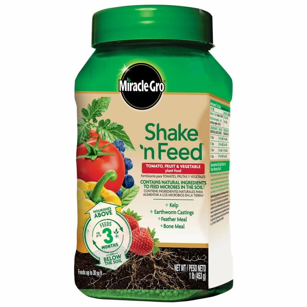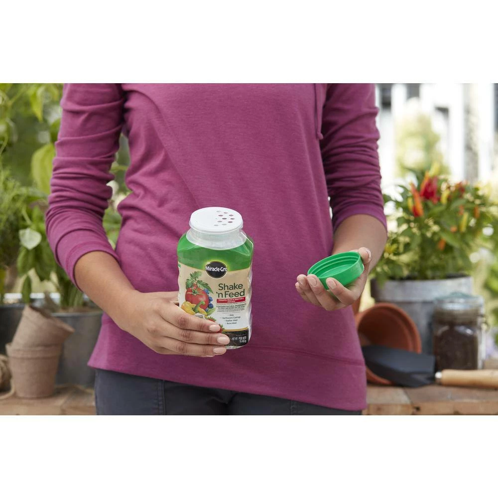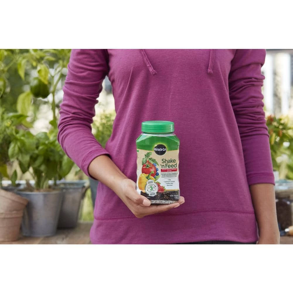 Miracle-Gro Shake ‘n Feed Tomato, Fruit and Vegetable Plant Food contains vital micronutrients, plus added natural ingredients, to nourish above and below the soil. It contains kelp, earthworm castings, feather meal and bone meal in an all-in-one particle. Added calcium helps form stronger cell walls, producing better quality and longer-lasting fruits and vegetables versus unfed plants. Plus, it helps prevent disorders in edible crops commonly associated with calcium deficiency. You can use it anywhere: in-ground and in containers with continuous feeding for up to 3-months. Feed your plants with the help of Miracle-Gro Shake ‘n Feed Tomato, Fruit and Vegetable Plant Food.