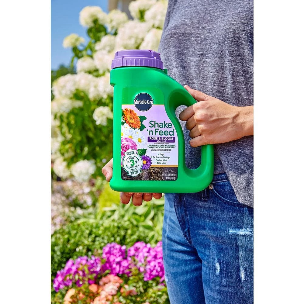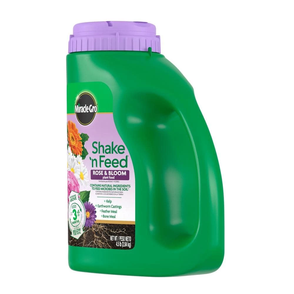 Specially formulated to help your plants grow strong and vibrant, while promoting more blooms and spectacular colors versus unfed plants. Miracle-Gro Shake ‘n Feed Rose and Bloom Plant Food contains vital micronutrients, plus added natural ingredients, to nourish above and below the soil. Formulated with kelp, earthworm castings, feather meal and bone meal in an all-in-one particle to feed microbes in the soil. You can use it anywhere: in-ground and in containers as it provides feeding for up to 3-months. Feed your plants with the help of Miracle-Gro Shake ‘n Feed Rose and Bloom Plant Food.