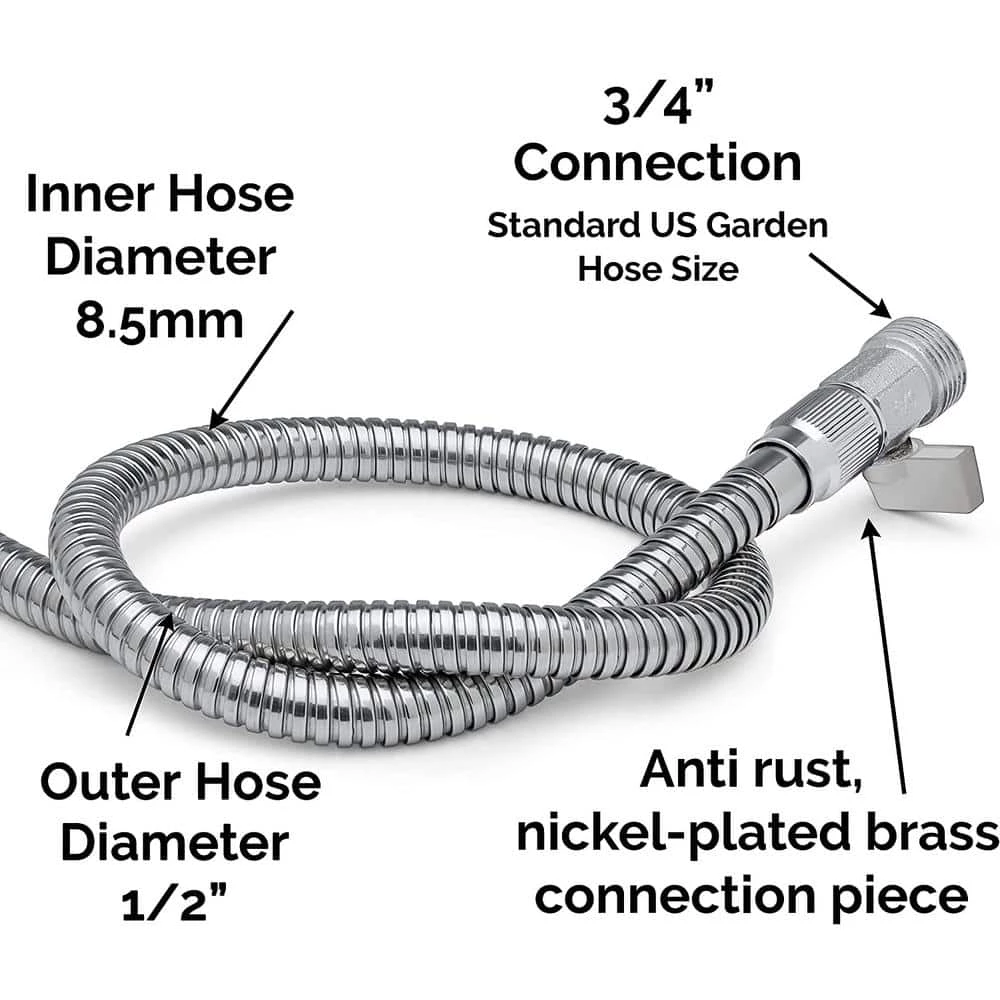 - Lightweight and compact: although the stainless steel hose is made out of metal, it’s not much heavier than your average garden hose and has the added benefit of being extremely durable and long-lasting