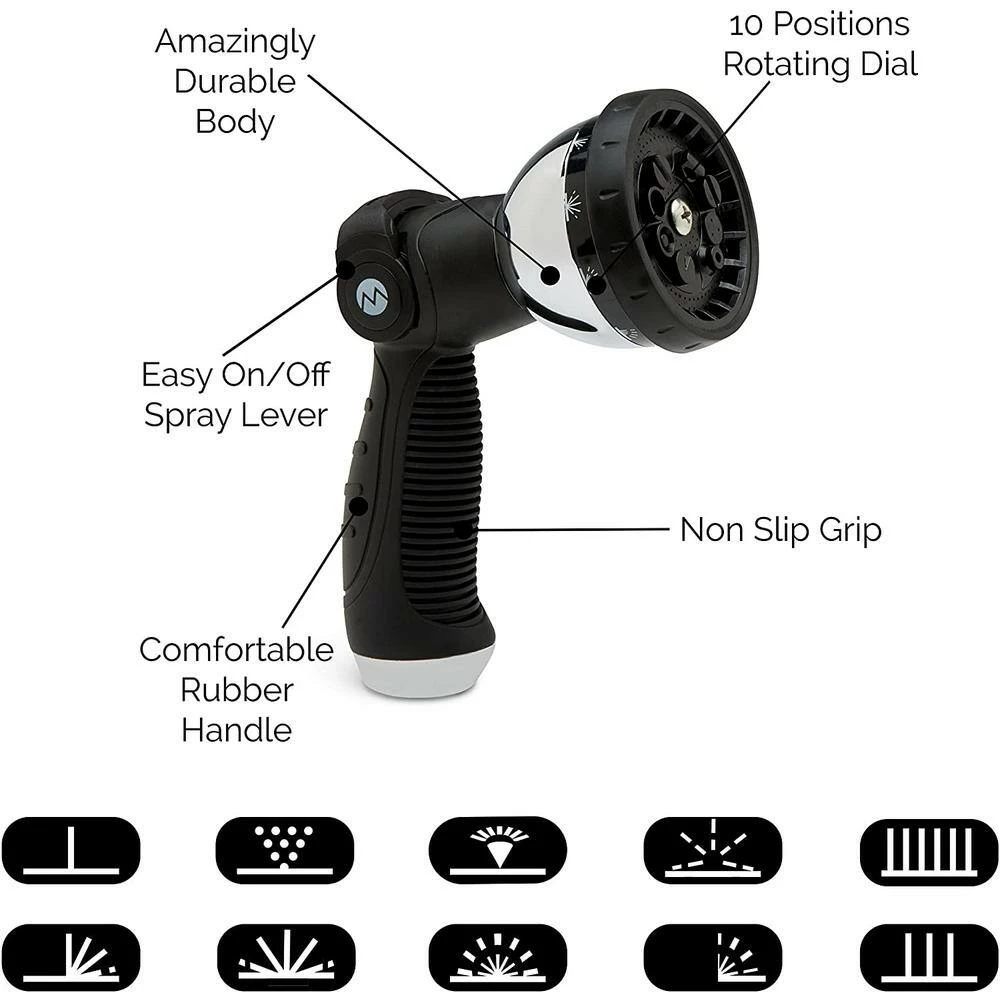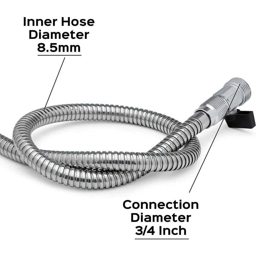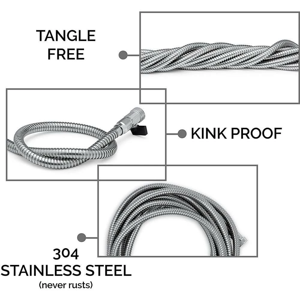 - Includes: stainless steel 100 ft. garden hose plus 10 way hose nozzle heavy-duty plus metal hose hanger hook