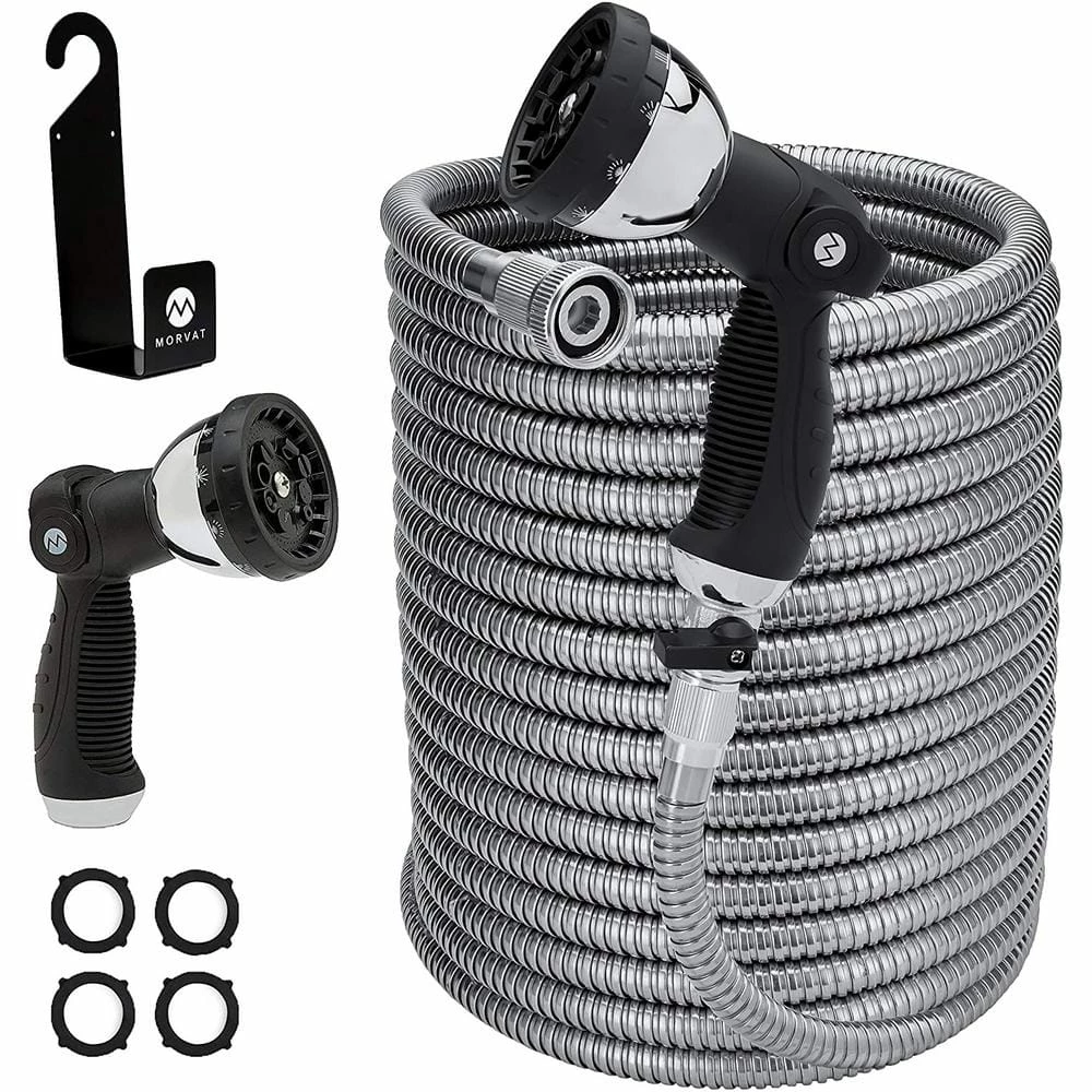 The best hose on the market. Morvat’s heavy-duty stainless steel garden hose is the ultimate hose. Unlike your typical garden hose that kinks, tangles and inevitable ends up full of holes- Morvat’s hose is made from heavy-duty, stainless steel, which is flexible, durable and extremely long-lasting.