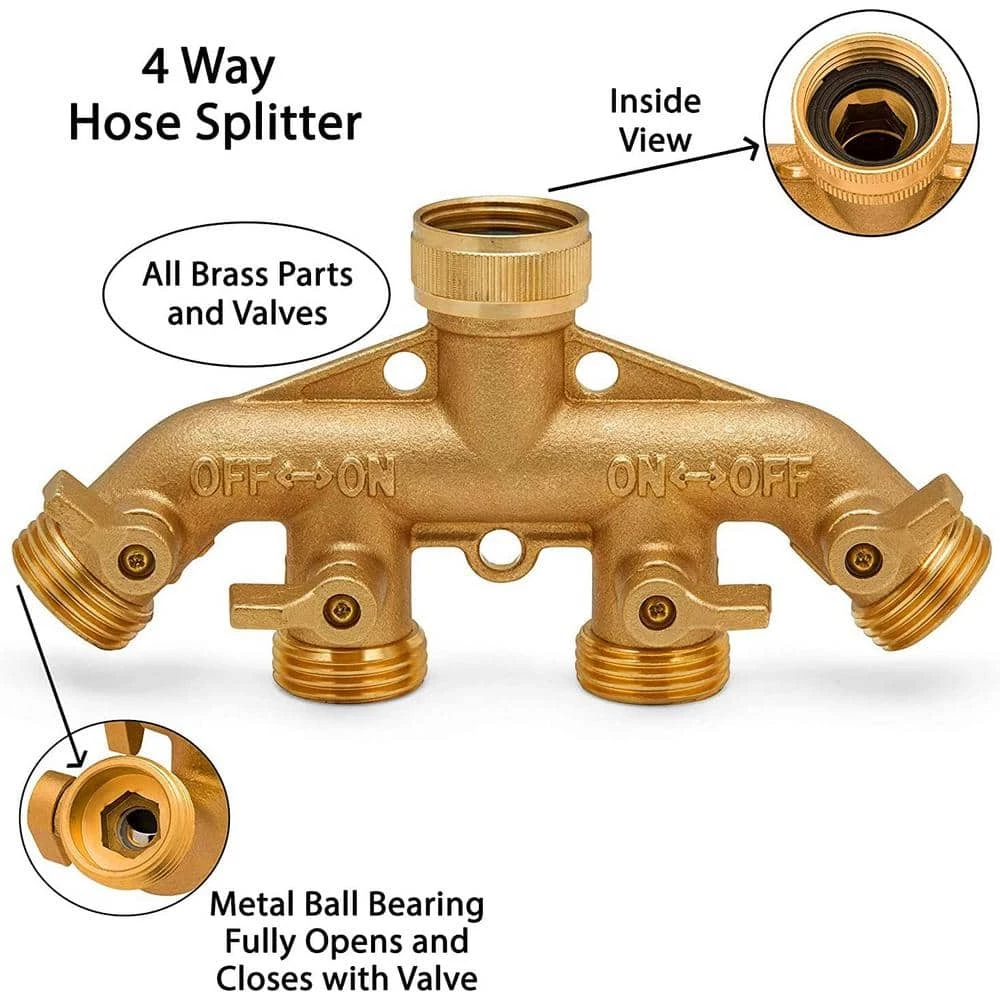 - 4-WAY GARDEN HOSE SPLITTER: Instantly convert your existing single hose spigot into 4 individually controlled spigots and enjoy enhanced productivity and convenience when utilizing multiple hoses.