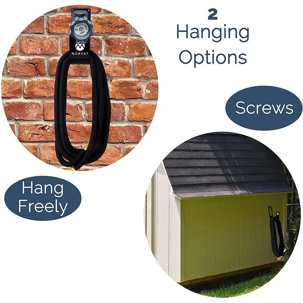 - 2 options/easy set up: the hose hanger wall mount has built-in holes so that it can be nailed to the wall and also has a hook at the top so that it can be hung over your outdoor spigot for easy portability and access
