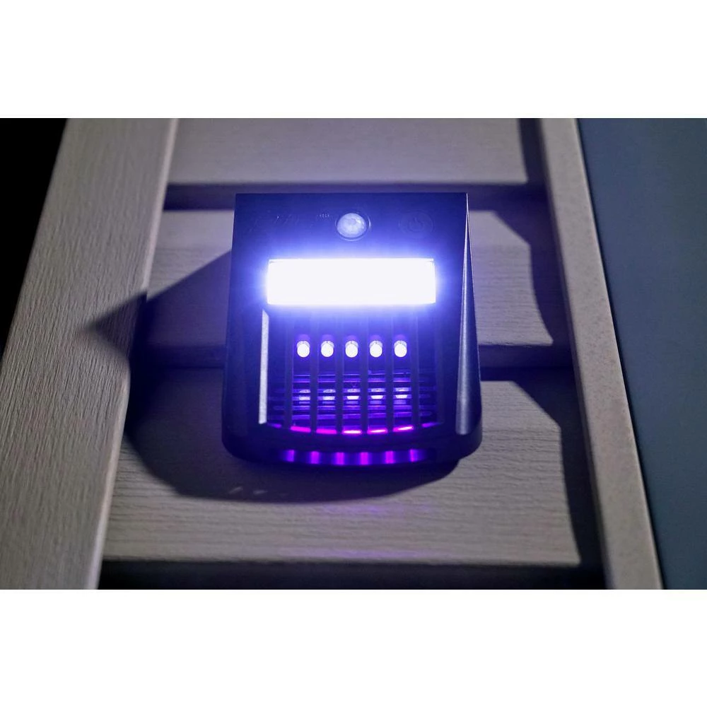 The PIC Bug Zapper and Motion LED light is a solar powered, 2-in-1 solution designed to discreetly kill bugs on contact. During the day and in direct sunlight, the solar cell charges the device. Once the dusk sensor is activated, the motion LED is triggered by motion at 155°. When the motion LED is not active or triggered, the built-in bug zapper is active and the UV light attracts flying insects. The device installs in seconds and requires only a single mounting screw to attach to any vertical surface.