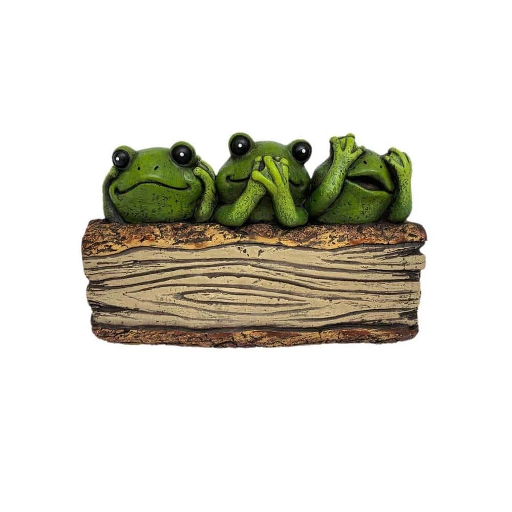Hear no ribbit, speak no ribbit, see no ribbit. These silly frogs are offering their own rendition of the ancient proverb and looking quite cute while doing so. Pleasantly decorated in a wood theme, this frog planter has plenty of room to grow your favorite bulbs or seeds and will look great in a garden or on the patio. Made of long-lasting cement and beautifully hand painted, this 10 in. 3 Frog Flower Pot is sure to provide many seasons of pleasure.