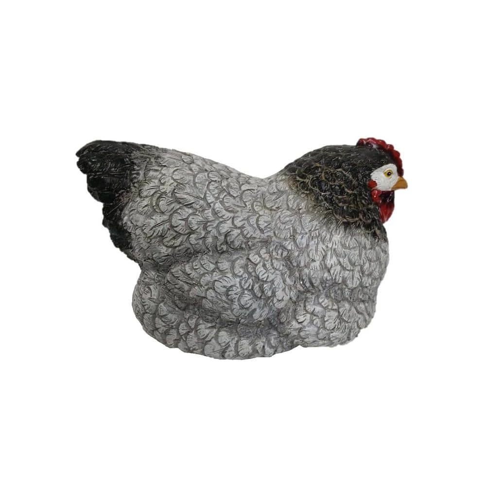 If you’ve ever been around chickens, you know how entertaining it is to just sit in the shade and watch in chicken TV in on a warm summer day. Then toss them a slice of watermelon and watch the feeding frenzy. So much fun. This lovely black and white chicken is doing her daily duty and taking a break from the mayhem to lay an egg. Made of long-lasting resin and beautifully hand painted, this 9 in. Lying Sussex Chicken is sure to provide many seasons of pleasure.