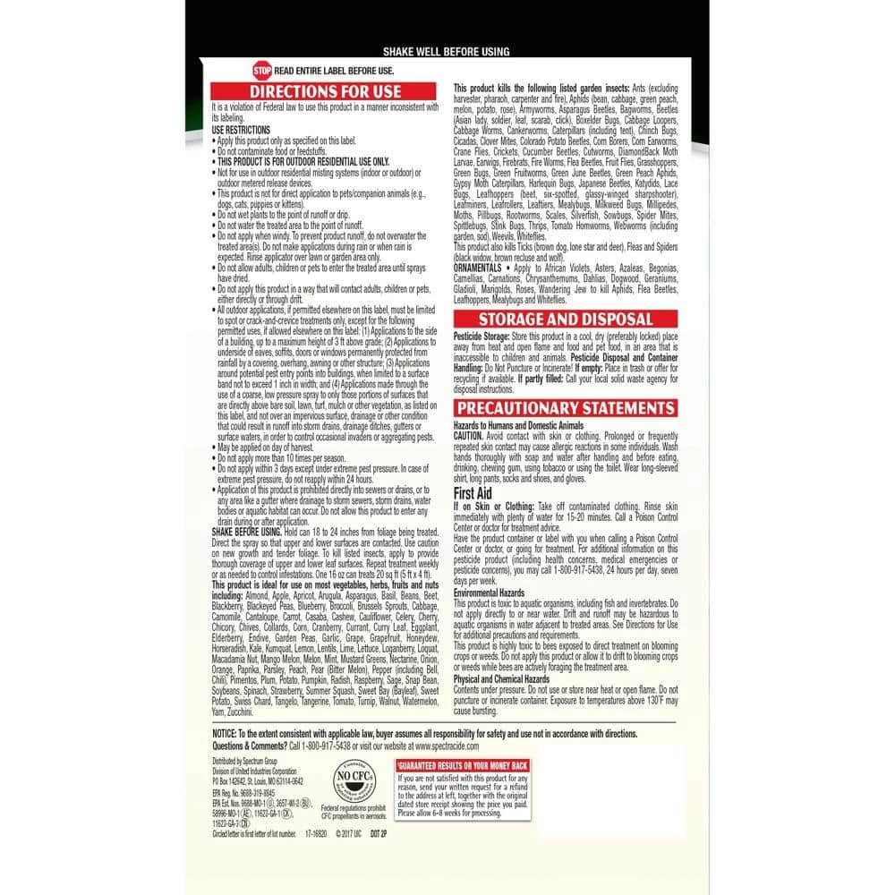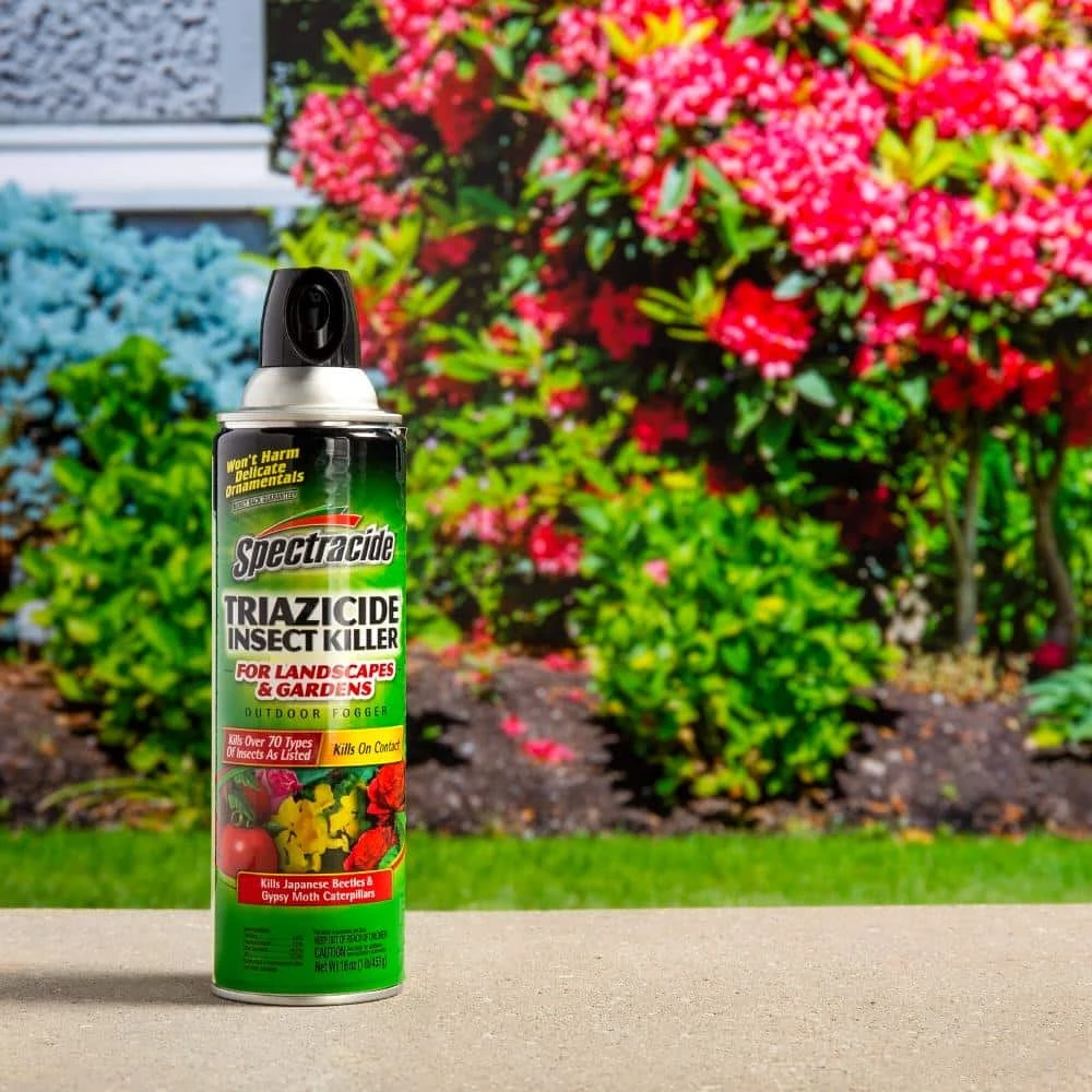 The power is in your hands to keep your landscape in line – unleash it with Spectracide lawn and garden products. Our easy-to-use, fast-acting insect, lawn disease and weed control solutions help you tame lawn and landscape invaders with incredible pest-punishing power. Take command with Spectracide brand. You hold the power.Spectracide Triazicide Insect Killer For Landscapes & Gardens Outdoor Fogger kills over 70 types of insects as listed on contact, including Japanese beetles and gypsy moth caterpillars. The fogging spray protects landscapes and gardens, and is ideal for use on most vegetables, herbs, fruits and nuts, and garden ornamentals as listed. It won’t harm delicate ornamentals when used and stored as directed. This formula kills listed garden insects, including ants, sod webworms, aphids, beetles, whiteflies, fleas, mites, stink bugs, deer ticks, crane flies and others (see product label for complete list)(. Spray with the can 18 to 24 inches away from the foliage to be treated; apply to provide thorough coverage of upper and lower leaf surfaces. Repeat treatment weekly or as needed to control infestations. One 16 ounce can treats 20 square feet of surface area.